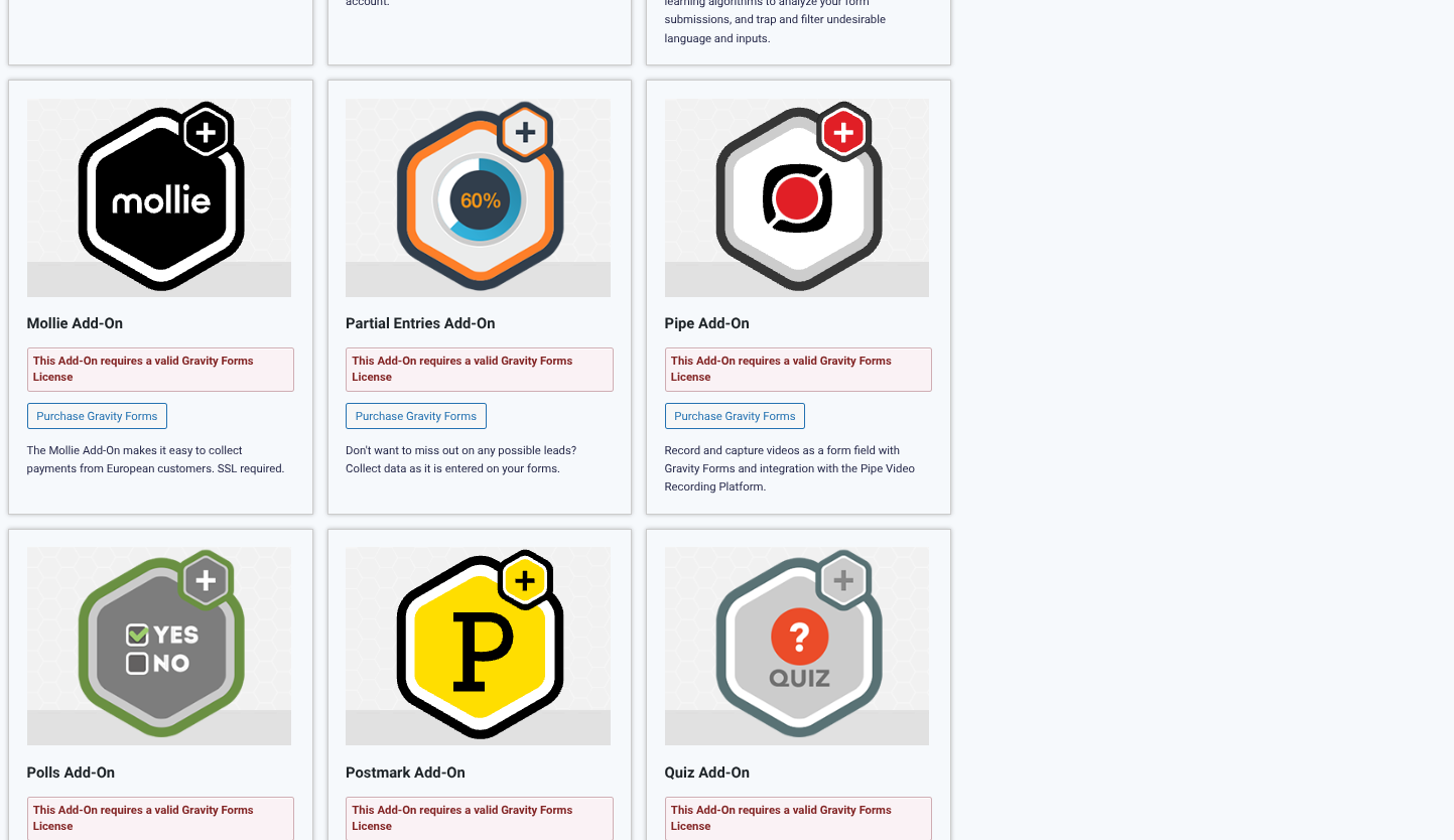 - Ga in WordPress naar Forms → Add-ons.